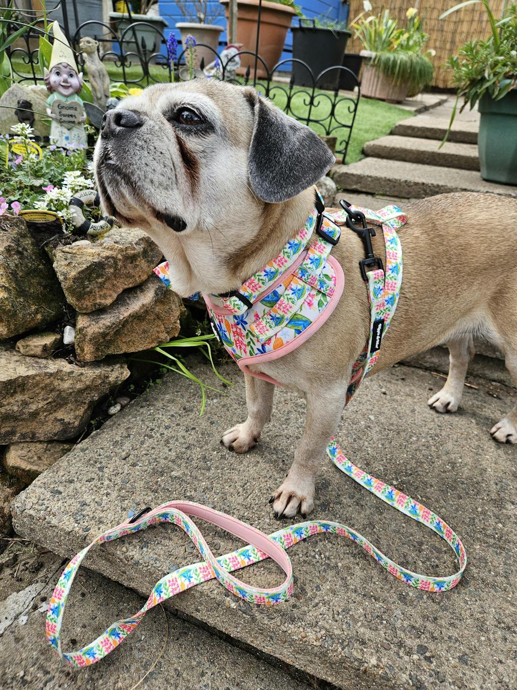 Let your dog blossom fully with this floral bundle, delivering gentle beauty and all the gear for serene, stylish strolls.